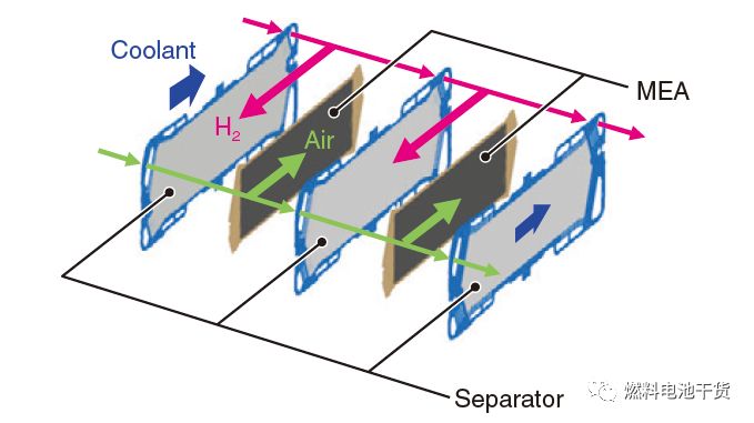 本田公司通过开发紧凑且抗冲击性强的燃料电池双极板使得电堆置于CLARITY燃料电池汽车引擎盖(front hood)下方变成可能。通过将上一代电池中下底较宽的梯形截面形状密封圈改成矩形截面形状,密封圈的宽度变小,电堆体积减少了约3 L左右。此外,树脂和密封圈包裹双极板有助于保持和外界隔离,消除了为防水和保持电堆箱体隔离的附加措施。再者,降低了新一代电堆的零部件数目,反应气体从歧管到流场的区域同样采用密封圈材料,在密封胶成形过程中就将上述区域制备出来,简化了流程。通过在双极板四周采用锯齿状树脂来提高抗冲击性,应对碰撞过程中的偏移和误差(misalignment)。最后,将薄板冲压成形工艺(press-forming)、树脂成型工艺(resin molding)和橡胶成型工艺(rubber molding)集成为一个工艺,生成成本大大降低,利于产业化。