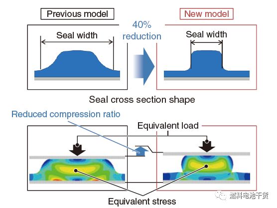 同时,与前一代相比,密封宽度也得到降低。对于本田燃料电池电堆,密封圈在长度上约1000 m甚至更长。可以预估,如果密封圈宽度减低,电堆体积就会减少。