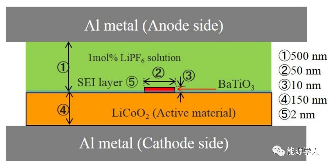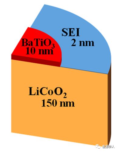 除了对循环稳定性的要求,快充能力也是下一代锂离子电池研究的主要目标之一。目前有两种方法来提高电池的快充能力:1)减少电极活性颗粒的粒径;2)对电极表面进行改性。前者可以增加材料比表面积,缩短Li+传输路径;后者可以防止钴离子溶解。尽管已经有人证明了高介电铁电材料有助于提高电池快充能力,然而,倍率性能提高背后的机理,尤其是电极在充放电时的界面变化仍然不清楚。因此在本文中,东京理工学院Mitsuru Itoh等人以BTO-LCO界面为研究对象,采用有限元法(FEM)和薄膜电池模型,详细的研究了铁电材料BaTiO3改性对正极LCO材料的快充性能影响(BaTiO3简写为BTO;LiCoO2简写为LCO)。