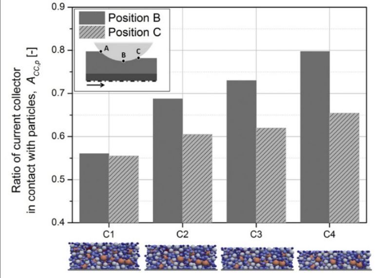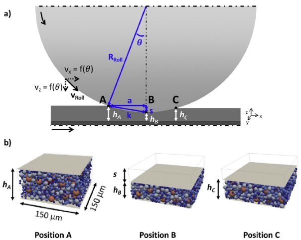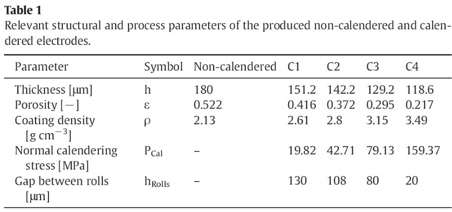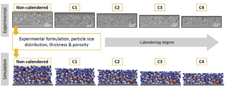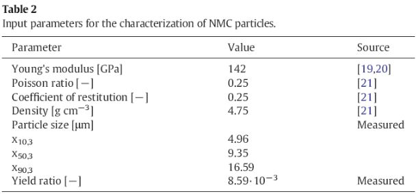 Sangrós Giménez C, Finke B, Schilde C, et al. Numerical simulation of the behavior of lithium-ion battery electrodes during the calendaring process via the discrete element method[J]. Powder Technology. 2019, 349: 1-11.