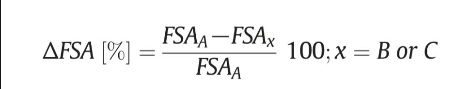 辊压过程,自由比表面积份相对变化如图8所示,在B点压力达到最大,压实率最大,与辊压前比较,自由比表面积最小,其变化率也最大,随后厚度反弹,自由比表面积增加,其变化率降低。随着压实率增加,不管B点还是C点,自由比表面积变化率增加。