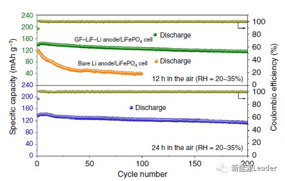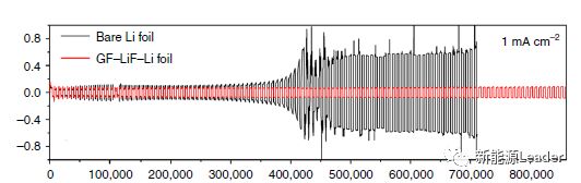 综述,GF-LiF-Li电极电池能很好的阻止锂枝晶生成,且不用添加SEI膜助剂,整个过程可以大气环境下组装,降低成本,其电化学性能稳定且优异,也能增加这种储能电池的能量密度,为二次锂电池的发展提供了新思路。