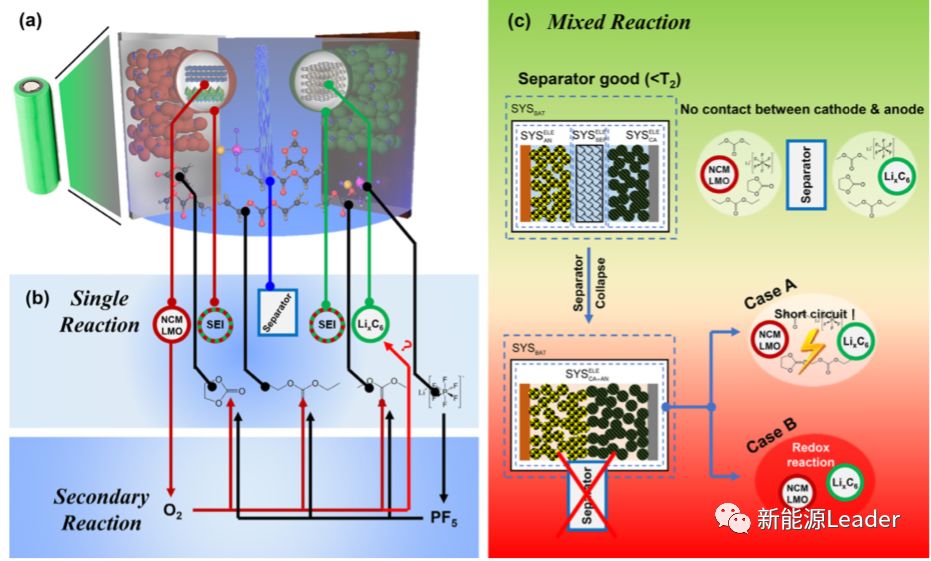 锂离子电池热失控过程的热量来源有多个,例如SEI膜分解,活性物质分解,活性物质分解产生的O2等分解产物,还会引起二次反应,因此我们很难对热失控中各反应产生的热量进行区分。