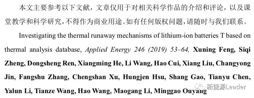 Xuning Feng的研究表明锂离子电池在T1-T2温度范围内热量的主要来源是负极表面SEI膜的分解,对于NCM电池而言T2-T3过程中,电池产热的主要来源则是正极与负极的氧化还原反应,而电池内短路过程产生的热量仅占锂离子电池在热失控过程中产热的一小部分。