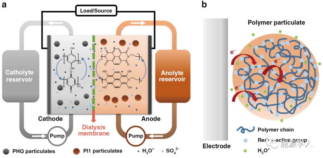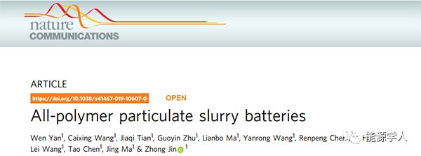 氧化还原液流电池有望用于大规模储能,但必须解决一些长期存在的问题,如安全问题、系统成本和循环稳定性。为此,南京大学金钟教授等人展示了一种基于全聚合物颗粒浆液电解质的氧化还原液流电池。微尺寸和均匀分散的全聚合物颗粒悬浮液用作氧化还原液流电池中的氧化还原活性材料,此材料突破了溶解度极限并促进不溶性氧化还原活性材料的应用。昂贵的离子交换膜被商业透析膜取代,可同时实现氢离子的快速穿梭,并通过尺寸筛选来切断氧化还原活性颗粒在隔膜上的迁移。总之,全聚合物颗粒浆料氧化还原液流电池表现出高度可逆的多电子氧化还原过程以及快速的电化学动力学和超稳定的长循环能力。(DOI:10.1038/s41467-019-10607-0)
