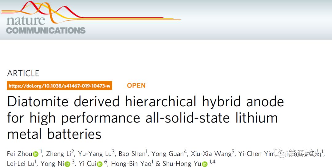具有分级结构的锂金属负极具有高倍率性能,体积变化调节能力和枝晶抑制能力,成为全固态锂金属电池的理想选择。然而,由于锂的挥发性,难以制备分级结构的锂金属负极。为此,中科大俞书宏教授和姚宏斌教授等人报道了利用天然硅藻土作为制备分级结构硅-锂基复合负极的模板。该复合负极在1000小时内表现出稳定的锂剥离/沉积性能,且在平均过电位低于100mV。此外,使用该锂金属复合负极与磷酸铁锂正极组装的全固态全电池显示出优异的循环稳定性(在0.5C下500个循环容量衰减0.04%)和高倍率性能(5C下65mAh/g 容量)。该天然硅藻土衍生复合负极可进一步利用可持续的自然资源制备高性能全固态锂电池。(DOI:10.1038/s41467-019-10473-w)