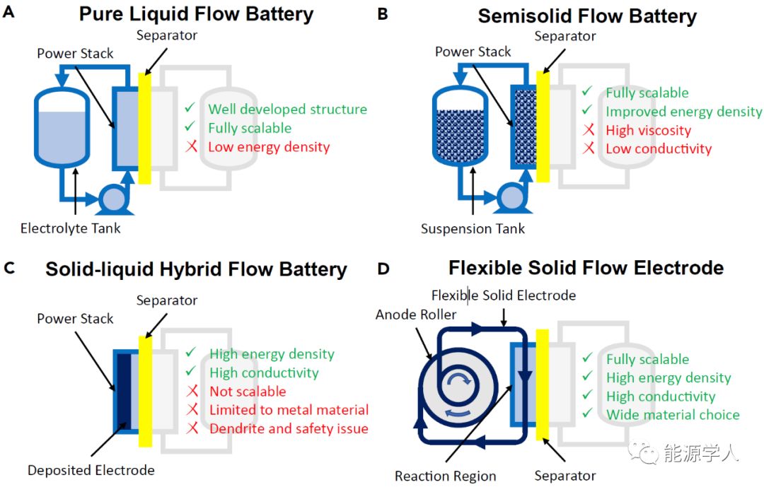 液流电池可以独立调节功率和能量,并支持低成本材料用于大规模储能。然而,当在混合系统(锌或锂金属)中使用固体电极时,它们具有低能量密度或差的可扩展性。为了打破泵送流体的惯例,香港中文大学机械及自动化工程学系卢怡君教授提出并展示了一种新的流动电池,其通过由高能量密度固体电极材料(柔性固体流动电极)制成的柔性电极带旋转,来输送活性材料。使用这种方法,作者展示了一种完全可扩展的水性固液混合液流电池,该电池使用磷酸钛锂(LTP)柔性阳极带与碘化锂(LiI)阴极电解质复合而成。这种循环柔性固体电极的制备方法可以简易地应用于现有的固液混合液流电池(例如,Zn-I2,Zn-Br2,Li-I2,锂-多硫化物等),并允许多种类型的固体电极材料在流动电池平台中不受溶解度或延展性的限制。(DOI:10.1016/j.joule.2019.05.015)