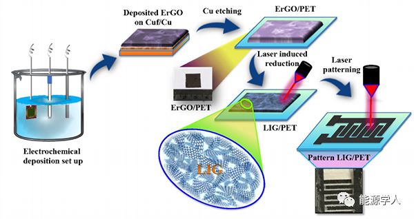 互通多孔石墨烯由于其独特的结构和优越的导电性,在开发非金属超微电容器作为超电容材料和集流体起着至关重要的作用。为此,印度旁遮普纳米科学技术研究所Ramendra Sundar Dey等人报道了通过电化学和激光辐射技术相结合的方法为制备导电石墨烯基超强装置提供了新的方法。拉曼光谱结果表明,激光诱导发能够有效的修复熔融互通片的缺陷,从而获得高导电率和高结晶度的激光辐射石墨烯样品。以柔性衬底上的激光辐射石墨烯为模版,研制具有1.2V工作电压的芯片上柔性超级电容器。有趣的是,没有任何金属电流收集装置,超级电容器表现出独特的双电层行为和前所未有的循环稳定性。值得注意的是,循环100000次后,初始电容保持率为百分之百。通过对装置阵列模块化,即使在较高的扫描速率(100V/s)下也不会对伏安曲线产生太大的影响,实现了10.8V高电池电压。这组激光辐射石墨烯微超级电容器与用于混合能源收集和存储的商用太阳能电池相一致。本研究为建立有着优秀循环寿命非金属超级电容器和促进可持续能源的未来提供了有效的方法。(DOI:10.1039/C9EE01458F)