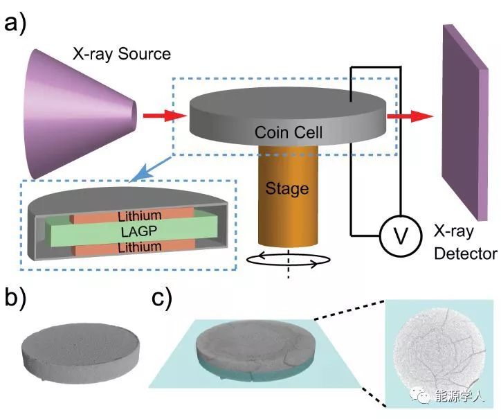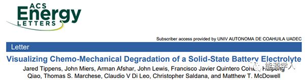 固态电解质(SSE)和锂金属电极之间相间处的转变可导致固态电池循环期间的高阻抗和容量衰减,但界面的结构/化学/机械演变与电化学之间的联系尚不清楚。为此,美国佐治亚理工学院Matthew T. McDowell等人使用原位X射线计算机断层扫描来揭示电化学循环期间由相间生长引起的Li1+ xAlxGe2-x(PO4)3(LAGP)固态电解质内机械损伤的发展。具有体积膨胀相间的生长促使该材料中的破裂,并且发现循环期间的破裂程度是导致阻抗增加的主要因素,与界面本身的阻力相反。观察到裂纹从锂/ LAGP界面的边缘附近开始出现,这与模拟结果一致。本文所研究相间生长的化学力学效应有望在多种固态电解质材料中发挥作用,这项工作是设计耐用界面的一个进步。(DOI:10.1021/acsenergylett.9b00816)