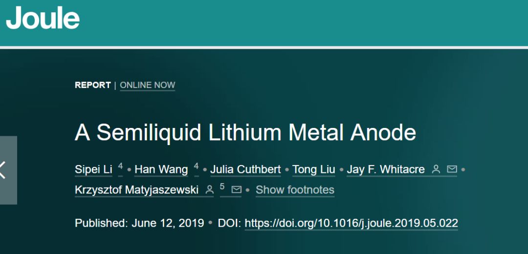 有鉴于此,美国卡内基梅隆大学Krzysztof (Kris) Matyjaszewski教授和Jay F. Whitacre教授领导的团队报道了一种半液态锂金属/聚合物复合材料电极(SLMA)用于搭配石榴陶瓷固态电解质,从而实现了传统液态电解质才有的充分的固/液界面,大大提升了固态电解质被用于高比容量锂金属负极时的工作性能。