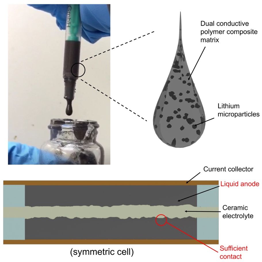 图1. 一种半液态的锂金属/聚合物复合电极材料。