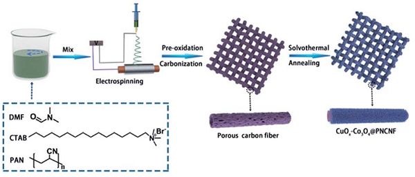 图5. 制备CuOx-Co3O4@PNCNF复合材料示意图