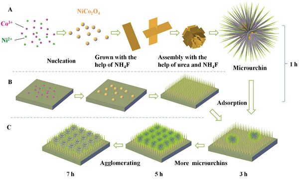 图6. 制备NiCo2O4 HNAs/NF示意图