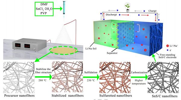 图7. 制备SnS/C纳米纤维薄膜过程示意图