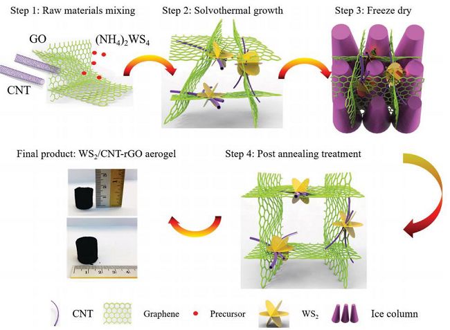 图10. 制备WS2/CNT-rGO溶胶纳米结构的过程示意图