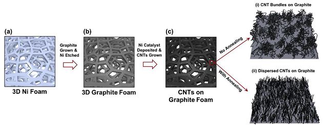 图11. 制备CNT-石墨三维混合结构的过程示意图