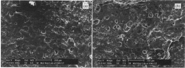 通过对两组电池的负极表面进行SEM分析,都可以发现电极表面被SEI膜覆盖,但是无法看出两者在厚度或覆盖面积上有什么不同。