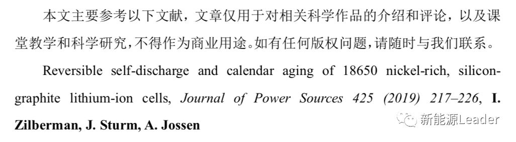 I. Zilberman的研究表明对于高镍/硅碳体系电池而言,存储过程中的容量损失主要来自于负极的活性物质损失,而活性Li的损失仅占到了锂离子电池容量损失的一小部分。锂离子在存储过程中的自放电电流大多数来自于界面的副反应,而不是来自于软短路。