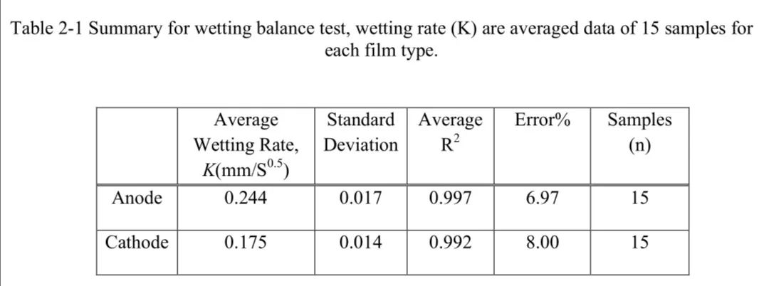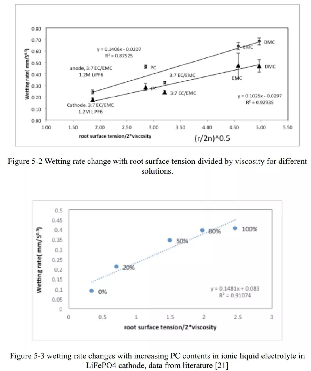文献:Sheng Y. Investigation of electrolyte wetting in lithium ion batteries: Effects of electrode pore structures and solution[J]. Dissertations & Theses - Gradworks, 2015.