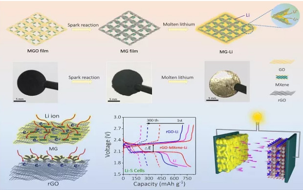 近日,大连化物所二维材料与能源器件研究组(DNL21T3)吴忠帅研究员团队发展了一种三维高导电、亲锂性的MXene/石墨烯多孔气凝胶新材料,并将其应用于高锂载量、高容量、无枝晶金属锂负极,获得了高比能、长寿命锂金属电池。