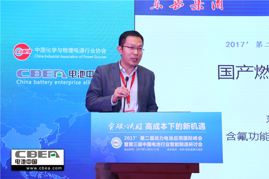 图为山东东岳集团研究院副院长、博士唐军柯作主题演讲