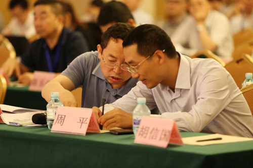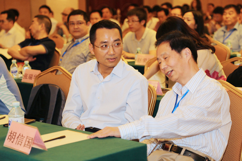 2014年5月29日,电池行业垂直媒体平台——《电池中国》网站上线新闻发布会在京隆重举行。图为双登集团常务副总裁周平与哈工大教授胡信国交谈。