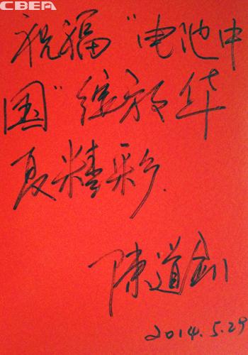 悦容东方创始人陈道剑先生为电池中国网站上线题写寄语