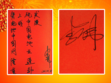 长青(中国)总裁白镜亮先生题写寄语:电池中国,造福人群!