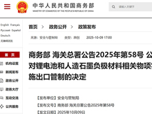 本公告自2025年11月8日起正式实施。 一、锂电池相关物项 (一)3A001 重量能量密度大于等于300 Wh/kg的可充放电锂离子电池(包含电芯和电池组)(参考税则号列:85076000)。 (二)3B901...