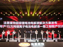 5月30日,国内领先的电解液生产商——法恩莱特新能源科技有限公司,在安徽省安庆市隆重举行超级锂电池电解液解决方案发布暨年产15万吨锂离子电池电解液一期工程投产仪式。 5月30日,国内领先的电解液生产商——法恩莱特...