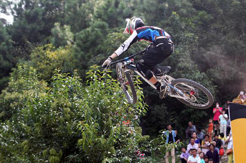 狭窄的山路,飞跃的单车,飞扬的尘土,山地速降演绎着无可比拟的惊险与刺激。10月5日,2014中国长兴首届山地速降国际邀请赛在美丽的城山沟景区拉开帷幕。超威No Name车手与来自两岸三地以及美国、法国、瑞士等国家近百位山地速降车手一决高下。历经角逐,超威No Name车队成员董新获得大赛大众组第三名的优异成绩。