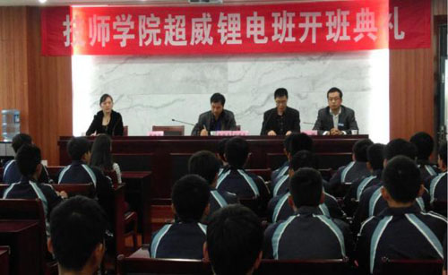 超威集团人力资源总监沈文祥、创元公司总经理孙延先、长兴技师学院、徐州工业职业技术学院有关领导,超威集团铅酸订单班、锂电订单班74名学生等参加了开班仪式。
