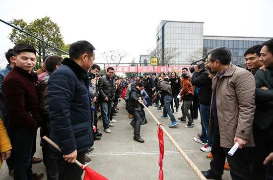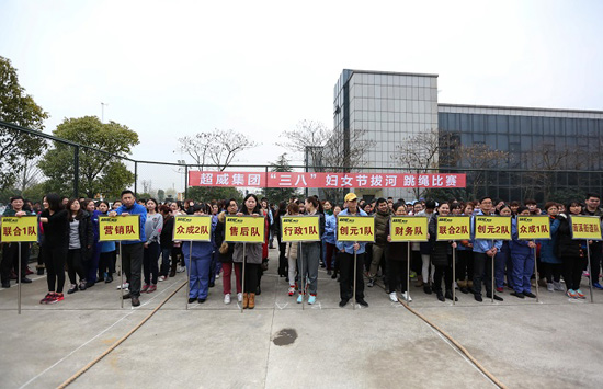 超威集团“三八”妇女节拔河跳绳比赛现场