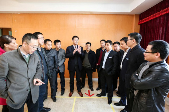杨新新总裁(中)同团队成员商量“走迷宫”的方法和路径