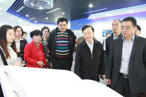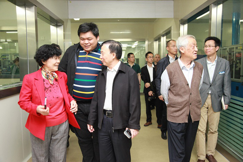 超威集团副董事长周龙瑞、杨云飞陪同企业家参观集团科技中心