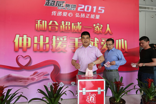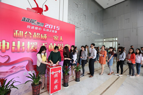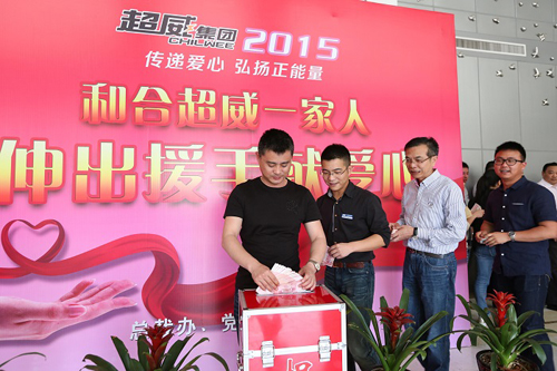 5月4日下午,主题为“和合超威一家人 伸出援手献爱心”捐款活动在超威集团总部举行,来自超威集团总部行政系统和营销系统的员工纷纷伸出援助之手,为病故联营商李才春家属献爱心。