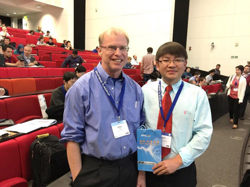 戴贵平博士(左)与诺贝尔物理学奖获得者K. Novoselov(诺沃肖洛夫)博士(右)