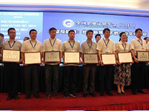 7月25日,主题为“转型与超越—经济新常态下的企业文化建设”的2015年全国企业文化年会在北京召开。会议总结了企业文化成功经验、深入探讨了新常态下企业文化建设的趋势和特点,以及如何在企业走出去过程中实现文化融合。会议表彰了2014-2015年度全国企业文化优秀成果、优秀案例和突出贡献人物。超威集团荣获全国企业文化优秀成果奖,董事长周明明荣获优秀成果主要创造人奖,总裁杨新新、党委办主任周建民荣获优秀成果参与创造人奖。