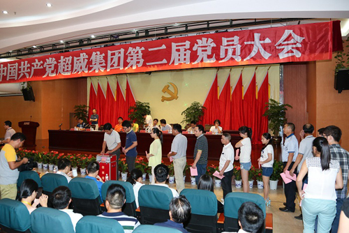 随后,周建民汇报了超威集团党委换届选举筹备工作情况;会议通过了《中国共产党超威集团第二届党员大会选举办法(草案)》,全体党员进行了新一届党委班子成员投票选举。杨新新、周建民、沈文祥、刘孝伟、许银山、徐学良、周明松、周恬、邱瑛当选为集团第二届党委委员。杨新新全票当选为中国共产党超威集团第二届委员会书记,沈文祥、周建民当选为副书记。