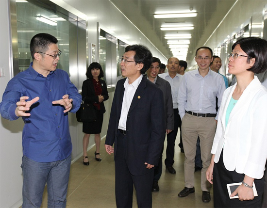 薛其坤(中)参观科技中心