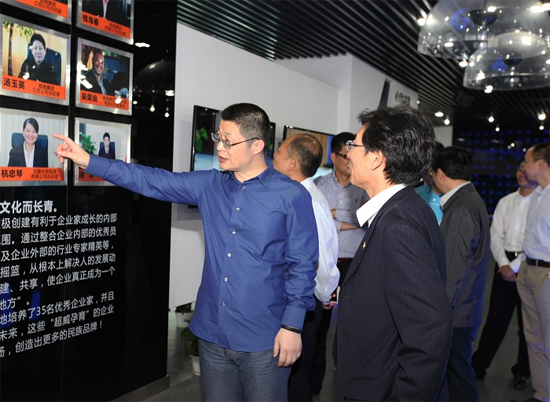 薛其坤详细了解了超威在生产经营、人才培养、文化建设等方面情况,并对超威培养优秀企业家的做法产生了浓厚兴趣。周明明对培养企业家流程图进行了详细解读。他说,超威始终为员工提供最广阔的平台,倡导自由发挥,在此基础上,鼓励创业创新。这种培养企业家模式解决了很多问题,比如,规避员工创业的风险、提高了企业培养接班人的能力等等,薛其坤对此表示肯定。