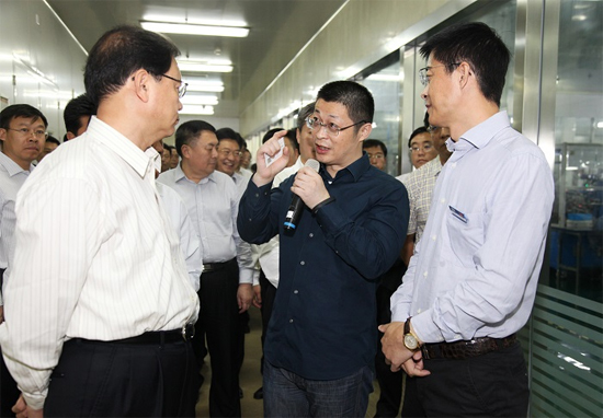 考察中,张古江详细询问了超威科研平台建设、储能电池和废旧电池回收系统建设等情况,周明明、杨新新一一作了详细介绍,指出要成为伟大的企业,必须秉持这样一个理念,即:用一流的眼光,制造一流的产品,拥有一流的人才,同时配备一流的设备,这样才有一流的成果。张古江对超威集团相继投入1.8亿用于科技中心建设,取得国家认定企业技术中心等创新平台资质,吸纳全球顶尖人才,开展原子经济法铅回收、智能电池开发等措施和成效表示肯定。