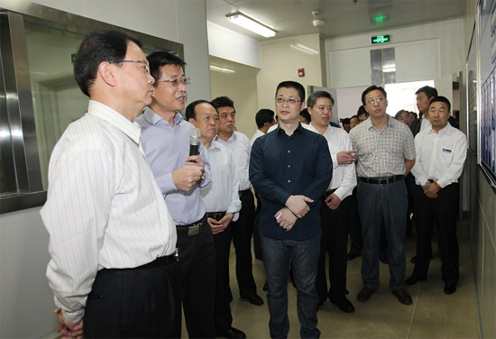 杨新新总裁向张古江书记介绍超威集团科技中心建设情况