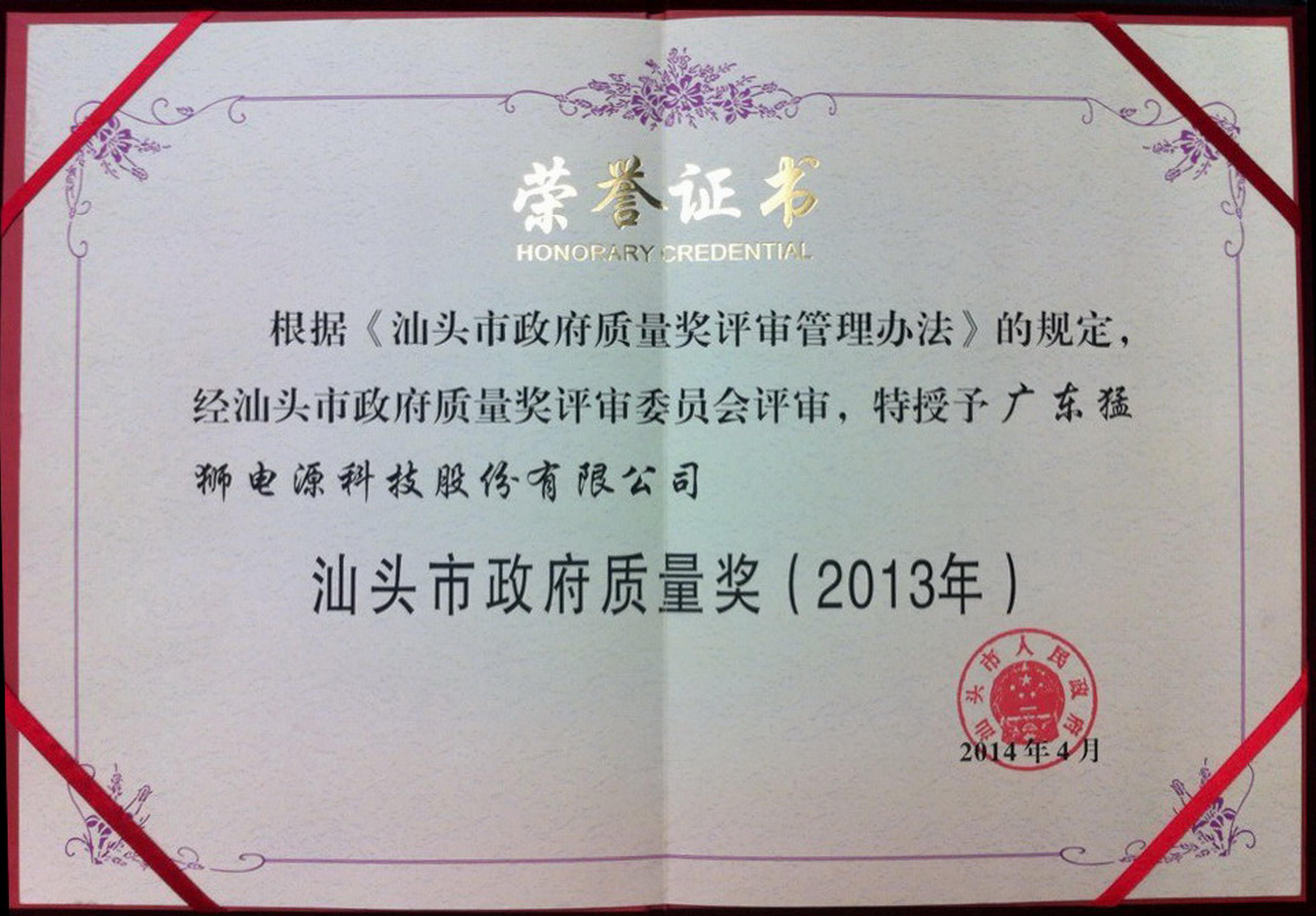 日前,首届“汕头市政府质量表彰会议”在广东汕头举行。广东猛狮电源科技股份有限公司(以下简称猛狮科技)等三家企业荣获首届“汕头市政府质量奖”。