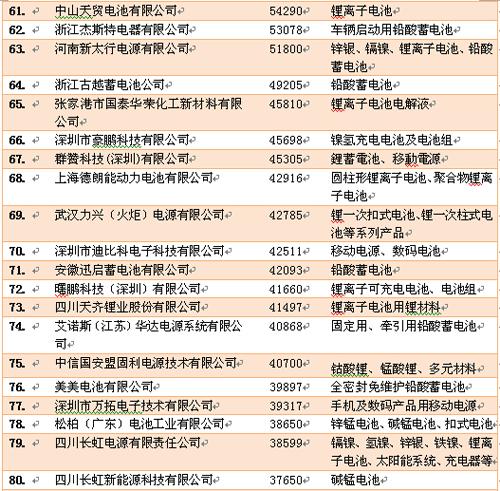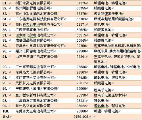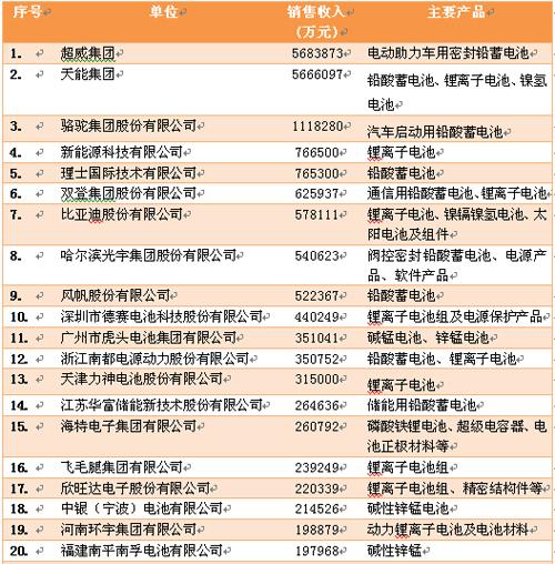 5月29日-30日,由中国化学与物理电源行业协会主办的“2014年中国电池行业市场年会暨《电池中国》网站上线新闻发布会”在北京召开。与会专家通过电池产业发展现状及趋势的分析,为产业健康发展和理性投资提供指导。会议还发布了“2013年中国电池行业百强企业排名”结果,以下为企业名单。