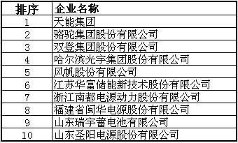 1、2013年度中国铅蓄电池行业十强企业