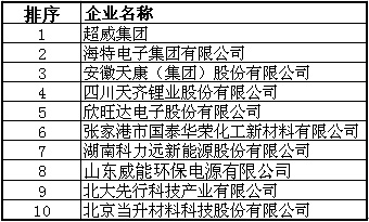 2、2013年度中国新能源电池行业十强企业