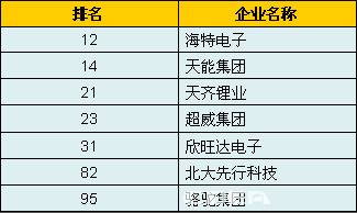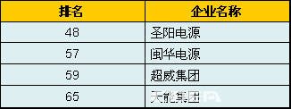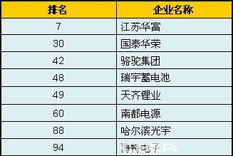 2013年度中国轻工业百强企业名单(电池企业共7家)