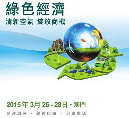由澳门特区政府主办的“2015年澳门国际环保合作发展论坛及展览”于3月26日-28日在澳门举办。本次展览以“绿色经济 清新空气 绽放商机”为主题,共有50多名来自中国、英国、法国等国家和地区的环保专家出席论坛,约有450家来自不同国家及地区的商家参展。
