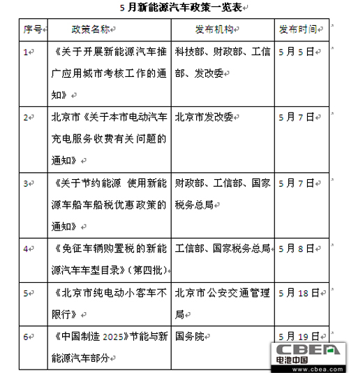 纵观之,5月份,我国新能源汽车市场迎来了较大力度的推广措施,从财政补贴到行政扶持,再到产业延伸拓展,新能源汽车已然成为时代的宠儿。
